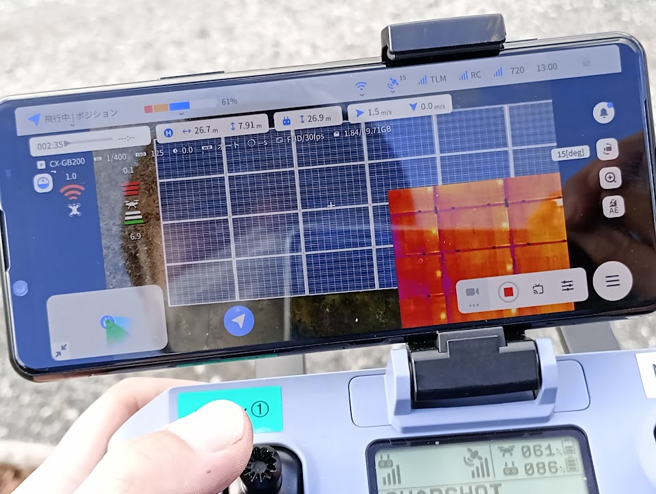 →操縦者がドローンを(機体)直接目で見て飛行させる方法です。バッテリの残量等の確認以外は機体から目を逸らすことができません。空撮等でドローンのカメラの映像を送信機の画面で見てはいけません。また昼間(日出から日没まで)飛行のみとなります。夜間には飛行させてはいけません。